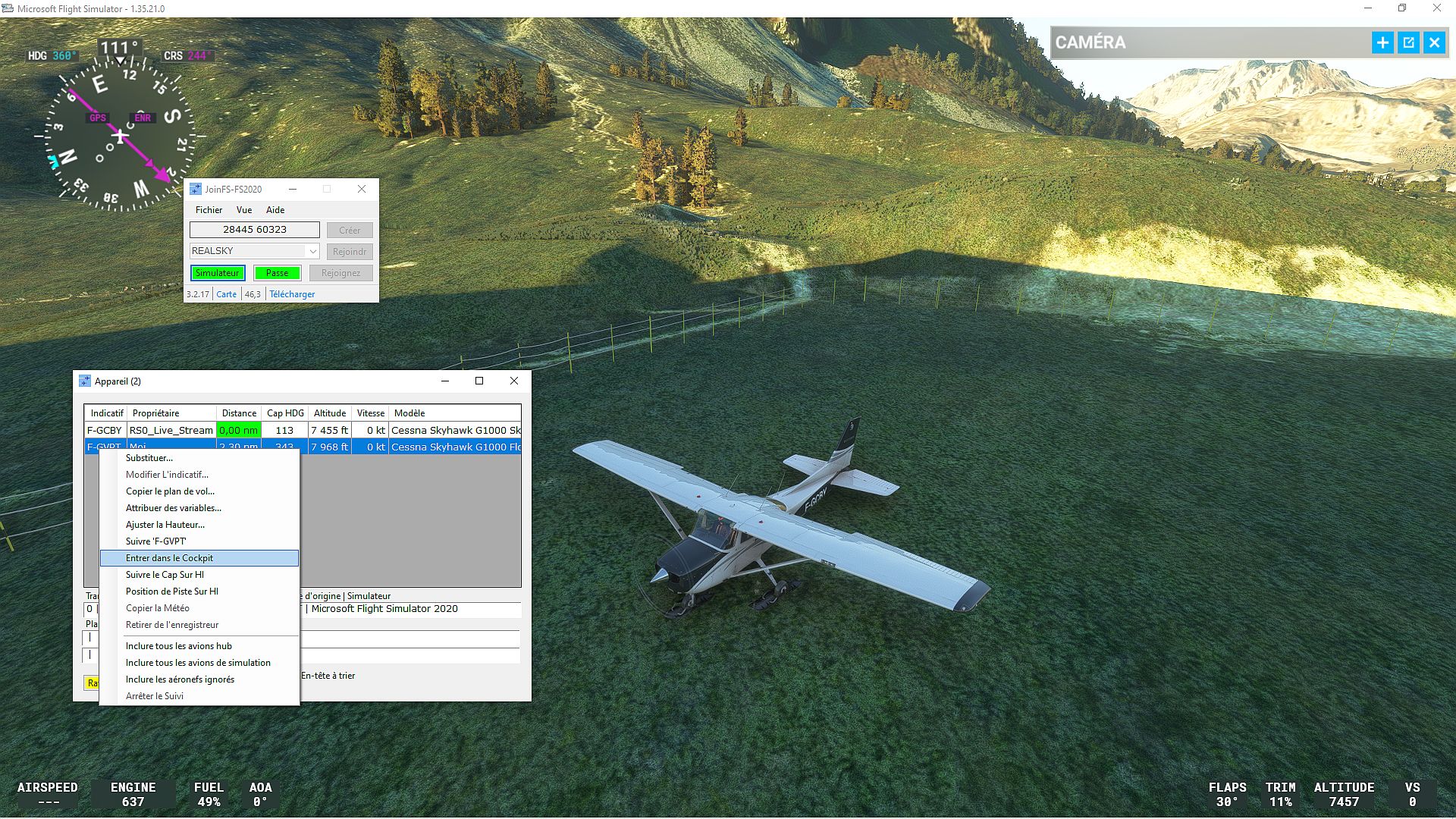 ![]() ![]() Membre enregistré #2 Inscrit(e) le: 05 janvier 2013 - 13:05:43Messages: 493 | Petit rappel sur le principe de cette session "Découverte" : Nous embarquerons tous dans l'un des deux avions pilotés par Olivier B. et Pierre V. (tous deux qualifiés montagne). En clair, on va se laisser promener ! :) Rappel de l'accès au mode "cockpit partagé" : 1 - Clic gauche sur vue/aircraft 2 - Sélectionner l'avion dans lequel vous voulez monter 3 - Clic droit et entrer dans le cockpit 4 - Laissez vous guider ! [ Édité 21 janvier 2024 - 22:41:28 ] | ||