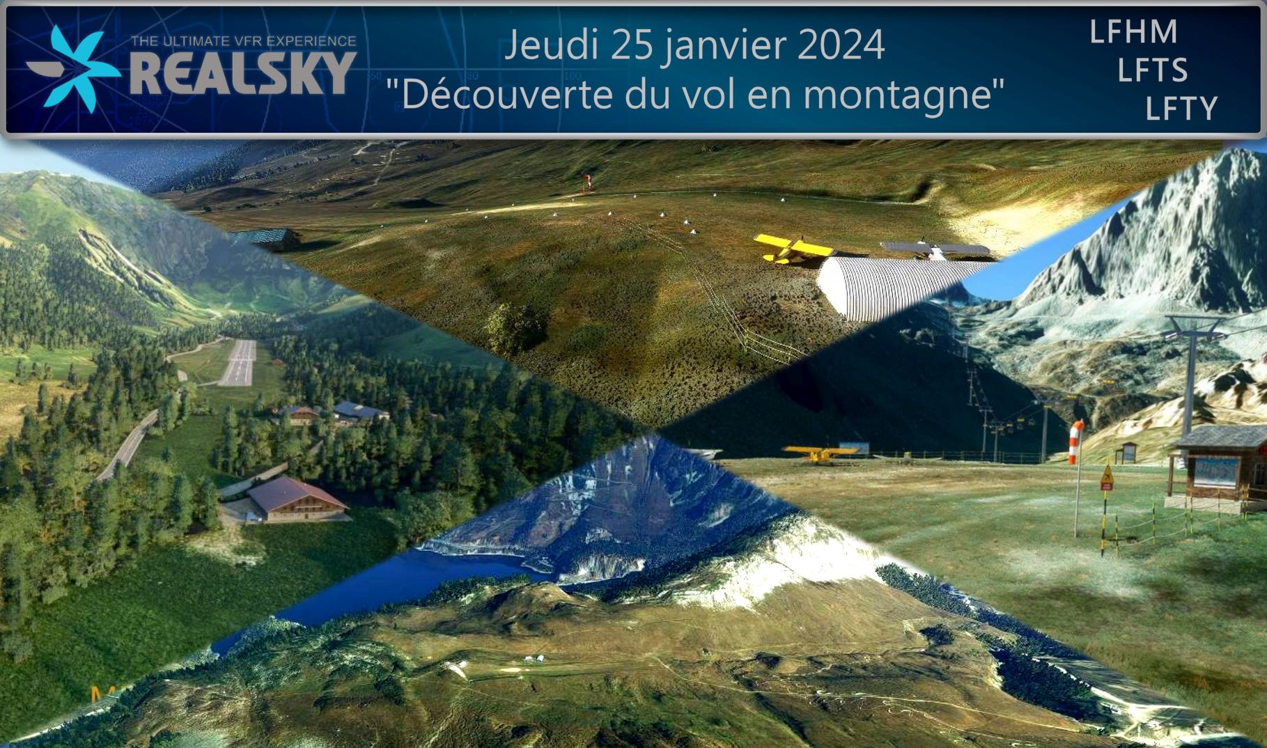 ![]() ![]() Membre enregistré #2 Inscrit(e) le: 05 janvier 2013 - 13:05:43Messages: 493 | Bonjour, Notre RealSky "Découverte du vol Montagne" approche et nous aurons la chance d'avoir non pas un mais deux pilotes qualifiés montagne avec nous (Olivier et Pierre). Si vous ne l'avez pas encore, pensez à vous inscrire pour cette session et à télécharger les modules complémentaires recommandés. Bons vols Bruno | ||